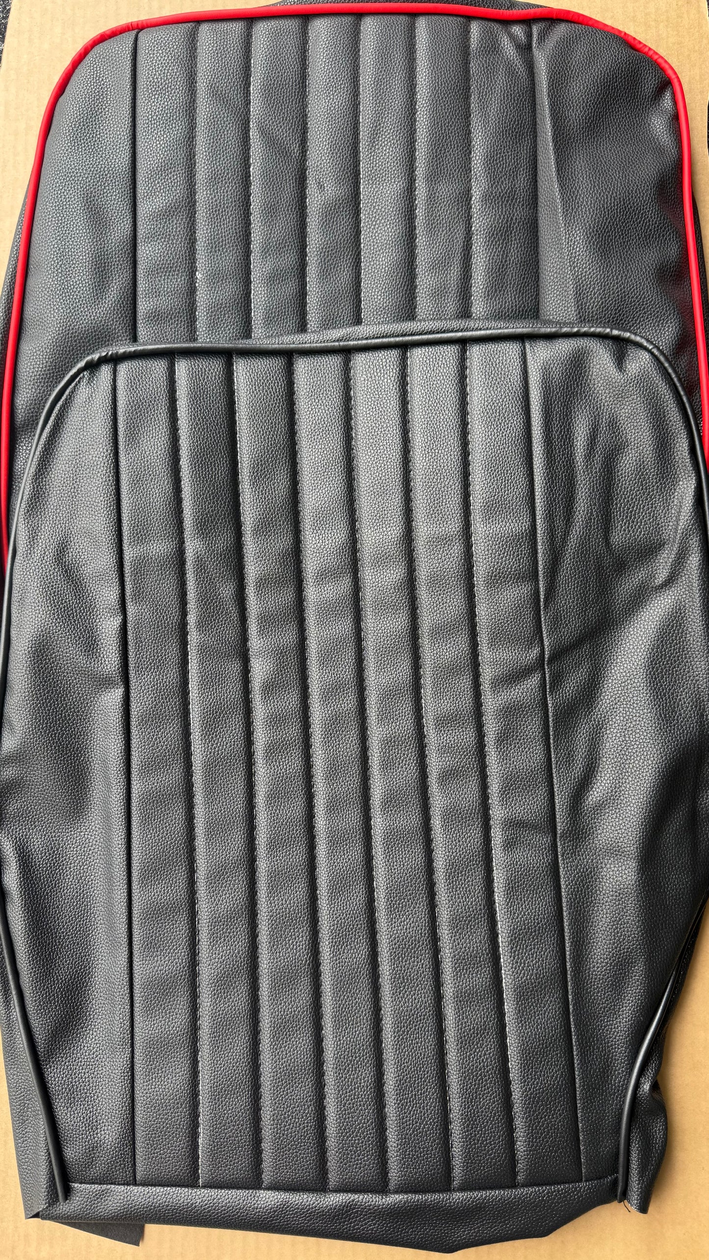 Heavy grain, high-quality black vinyl with black/red/white piping.